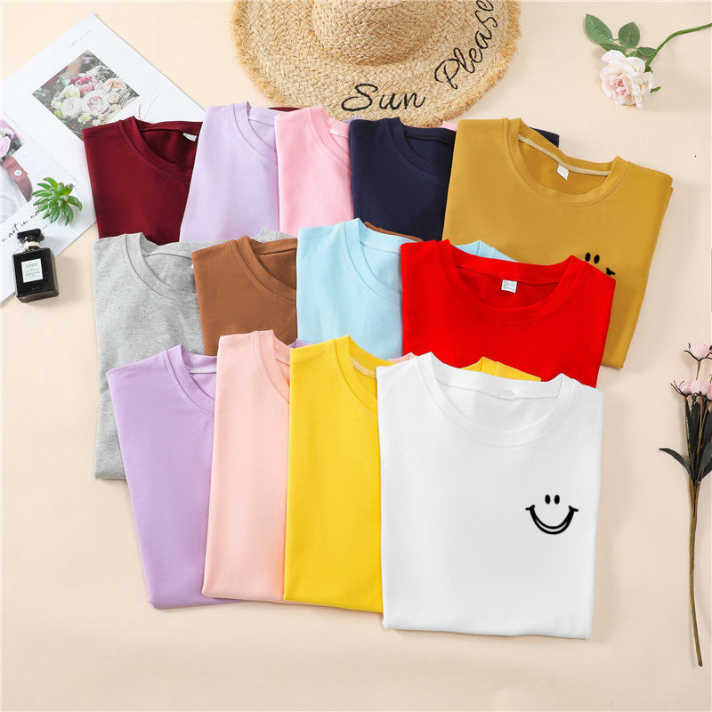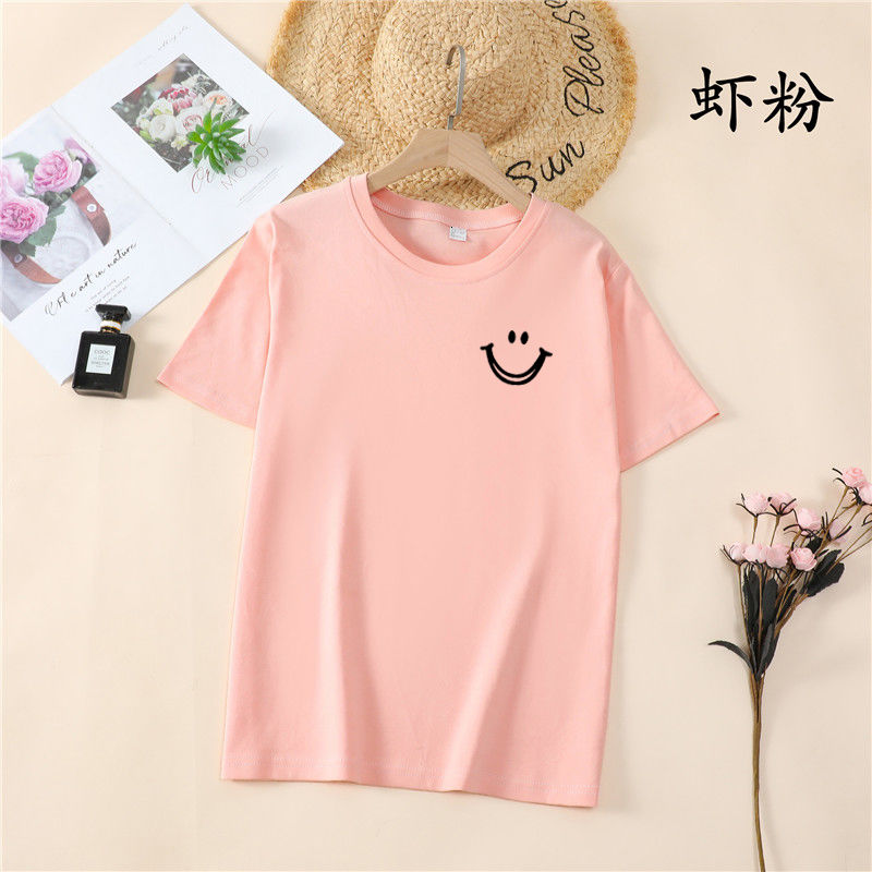 韩国T恤女士优雅舒适微笑T女士短袖卡通衬衫